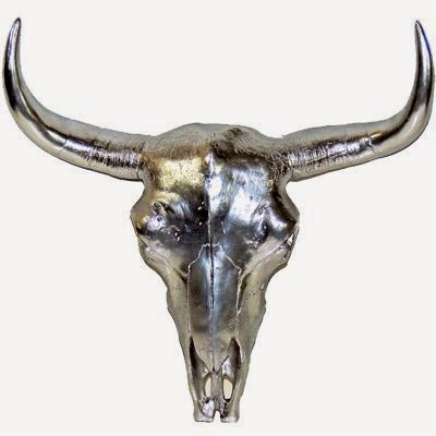 Uma caveira de vaca prateada.
